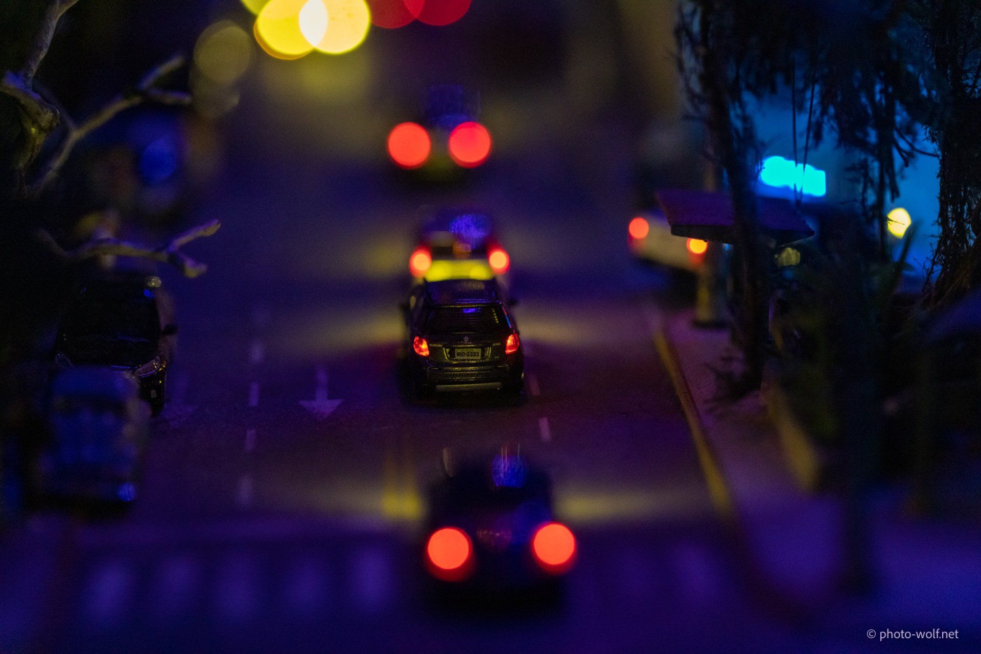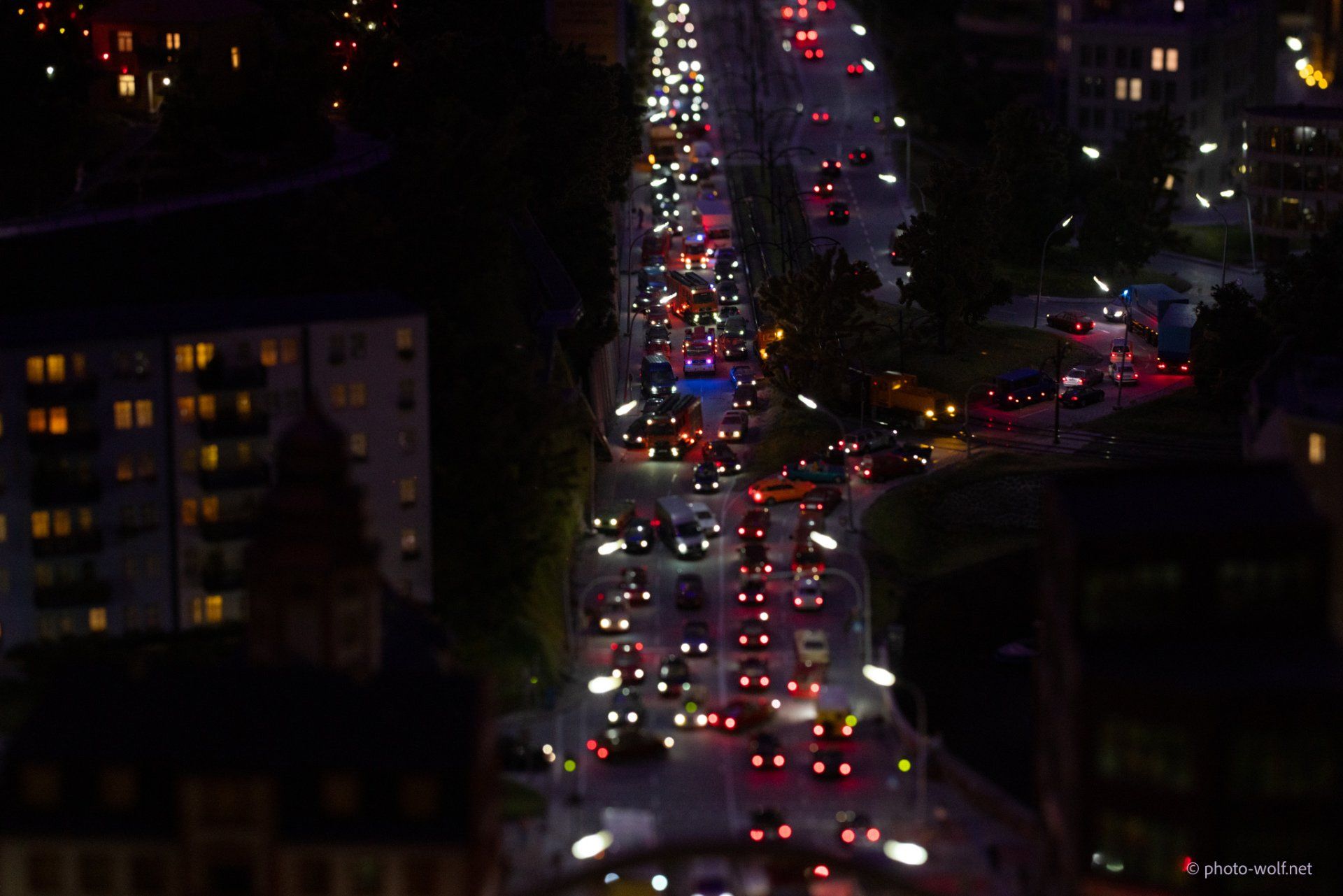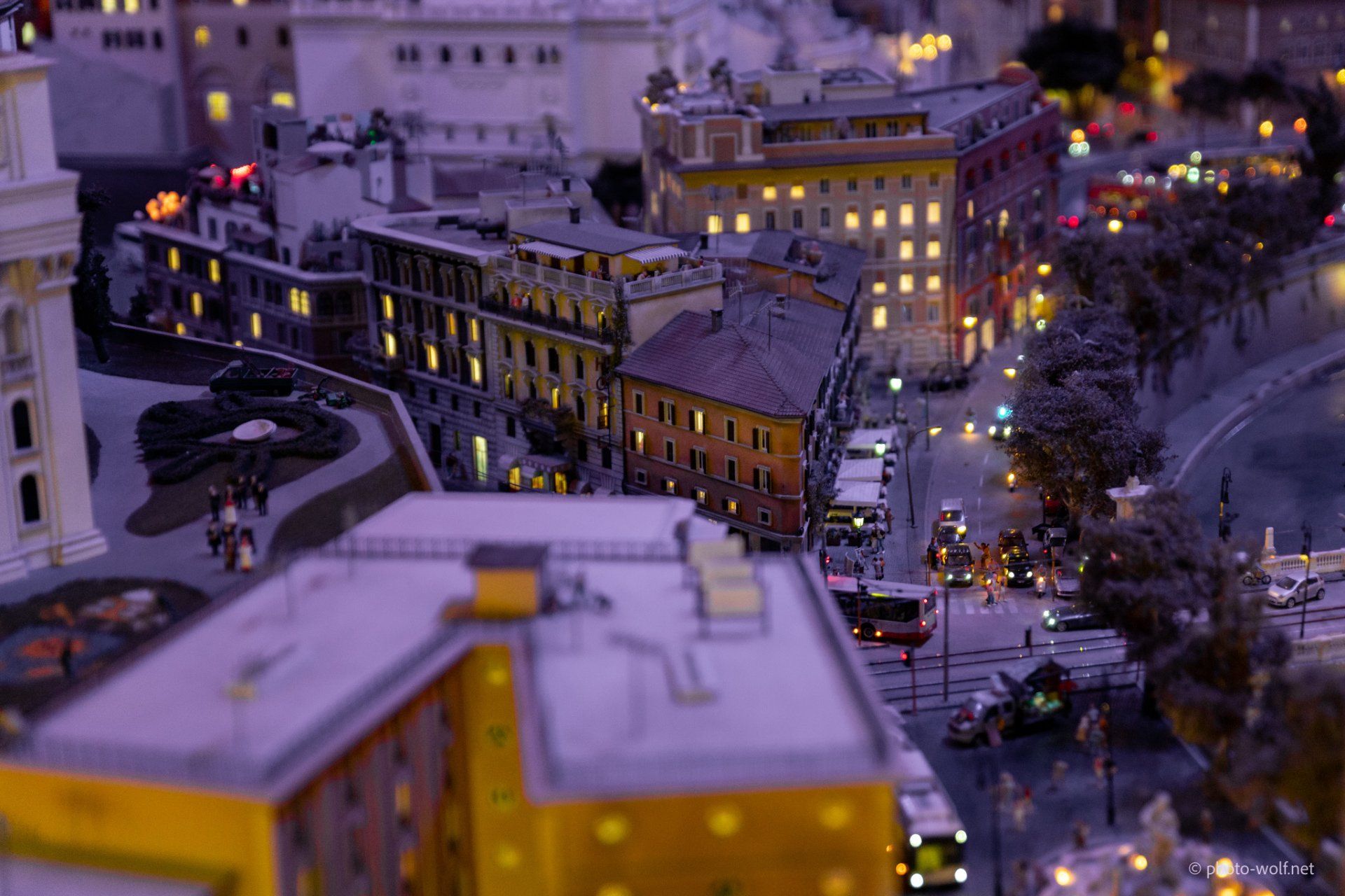 The subtleties of the lighting become particularly obvious when changing to night. In addition to the street lights and the lights in the cars - which, how could it be otherwise, only switch on their lights when it is dark (!) - no, the individual windows of the buildings are also illuminated differently and certain things behind the windows are only good then to recognize.