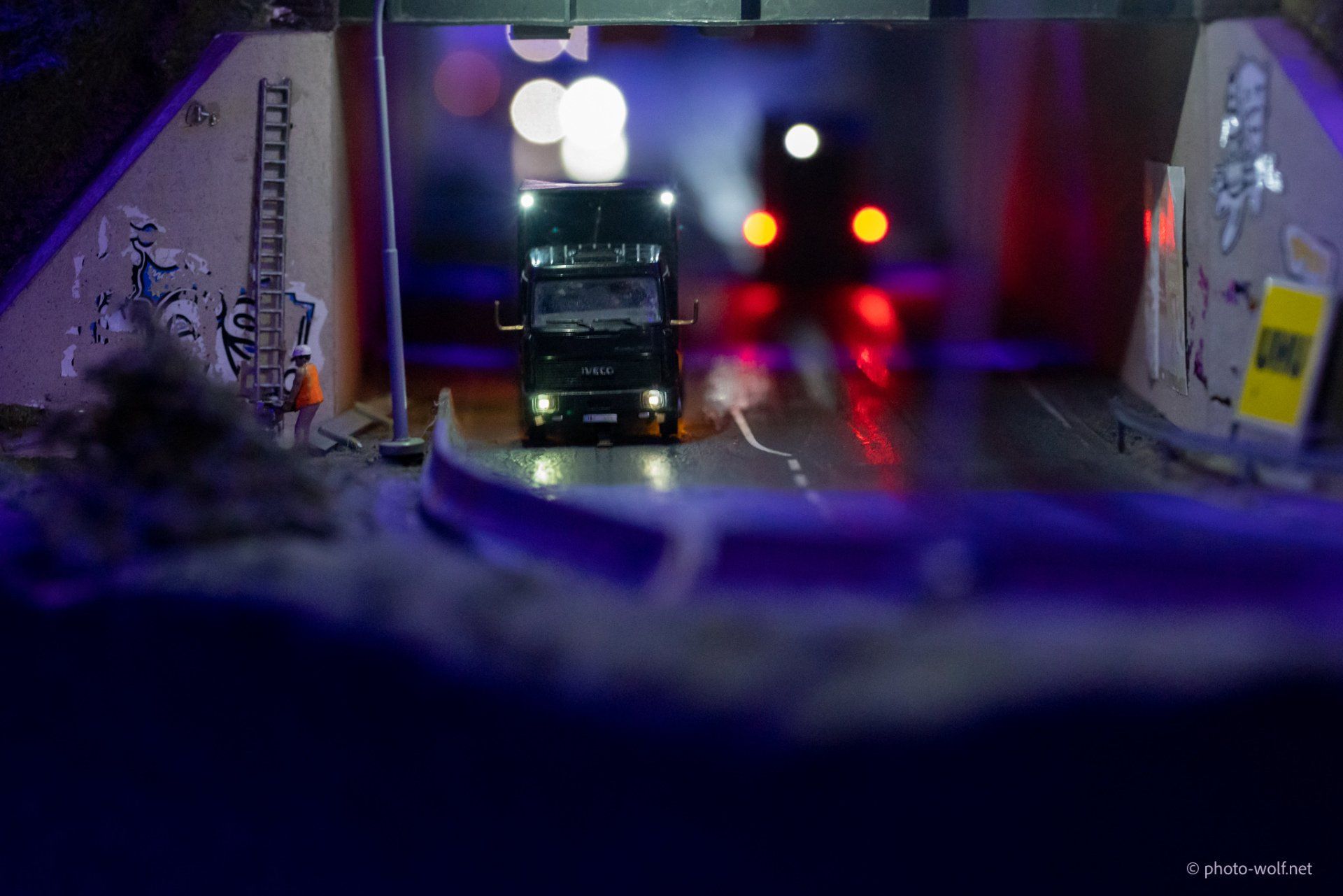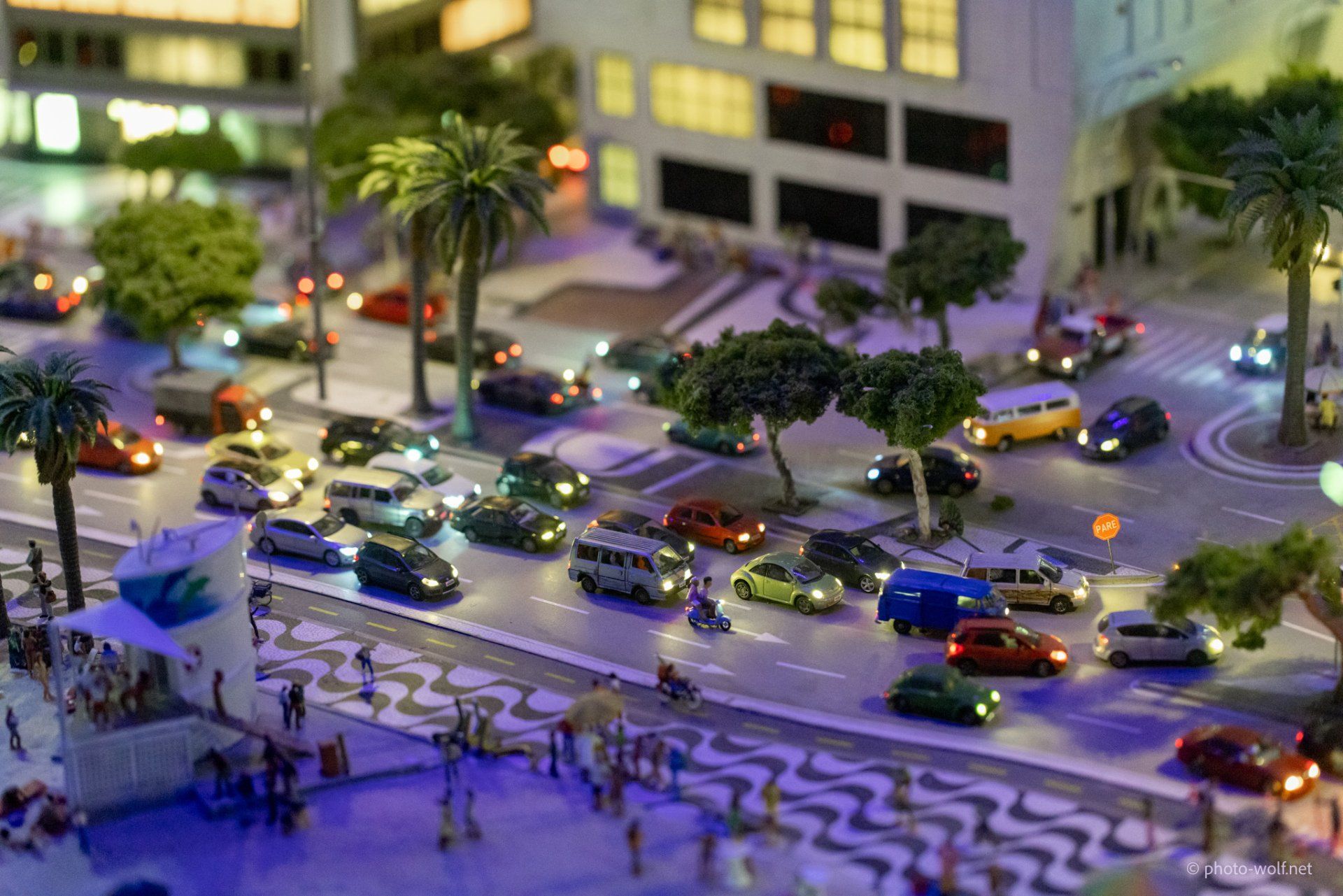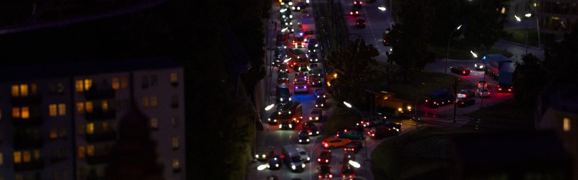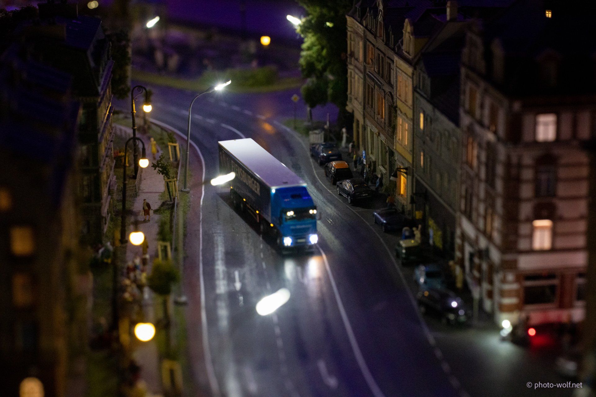 The subtleties of the lighting become particularly obvious when changing to night. In addition to the street lights and the lights in the cars - which, how could it be otherwise, only switch on their lights when it is dark (!) - no, the individual windows of the buildings are also illuminated differently and certain things behind the windows are only good then to recognize.