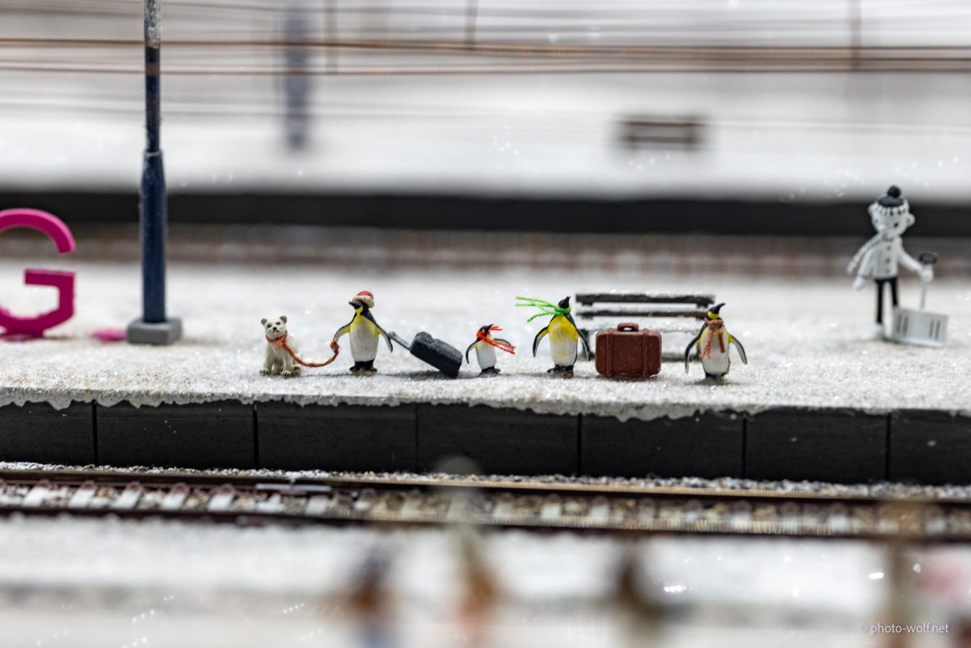 So the builders seem to love penguins (I just counted) - so there are penguins in the bathtub, as sled dogs, ski jumpers, travelers on the platform, musicians and many more. If you look closely you can see many classic films, whether Star Wars (Han Solo, Chewbacca, Ewoks), Little Red Riding Hood and the Seven Dwarfs, Back to the Future, Badman, Spiderman, Play Me a Song of Death, Marvin - the depressed robot from The Hitchhiker's Guide the Galaxy, Harry Potter, Bruce Lee, Jim Button and Luke the Engine Driver, the Smurfs and many others.