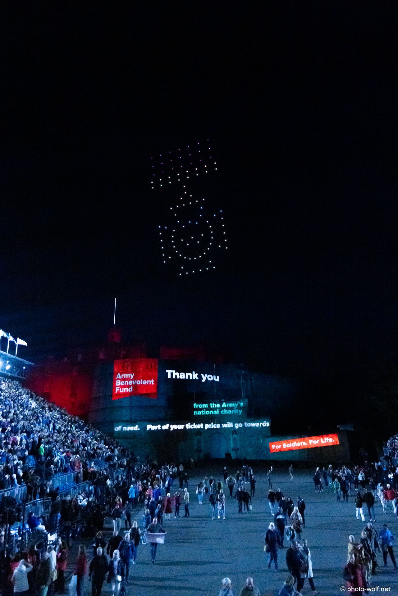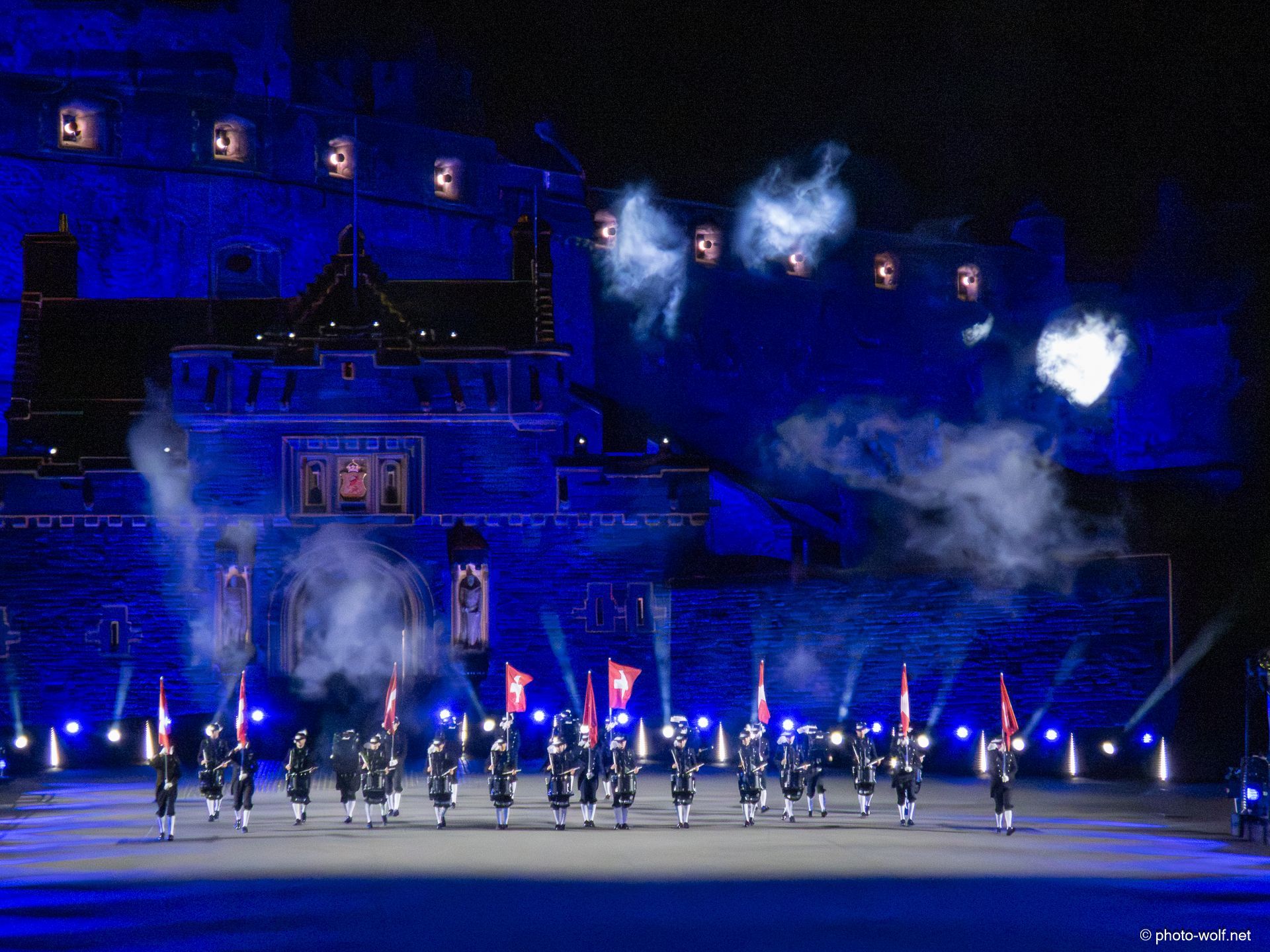 Festival and has taken place every August since 1950 on the square directly in front of Edinburgh Castle, the "Esplanade." This year it was the Tattoo 75 – a big party.