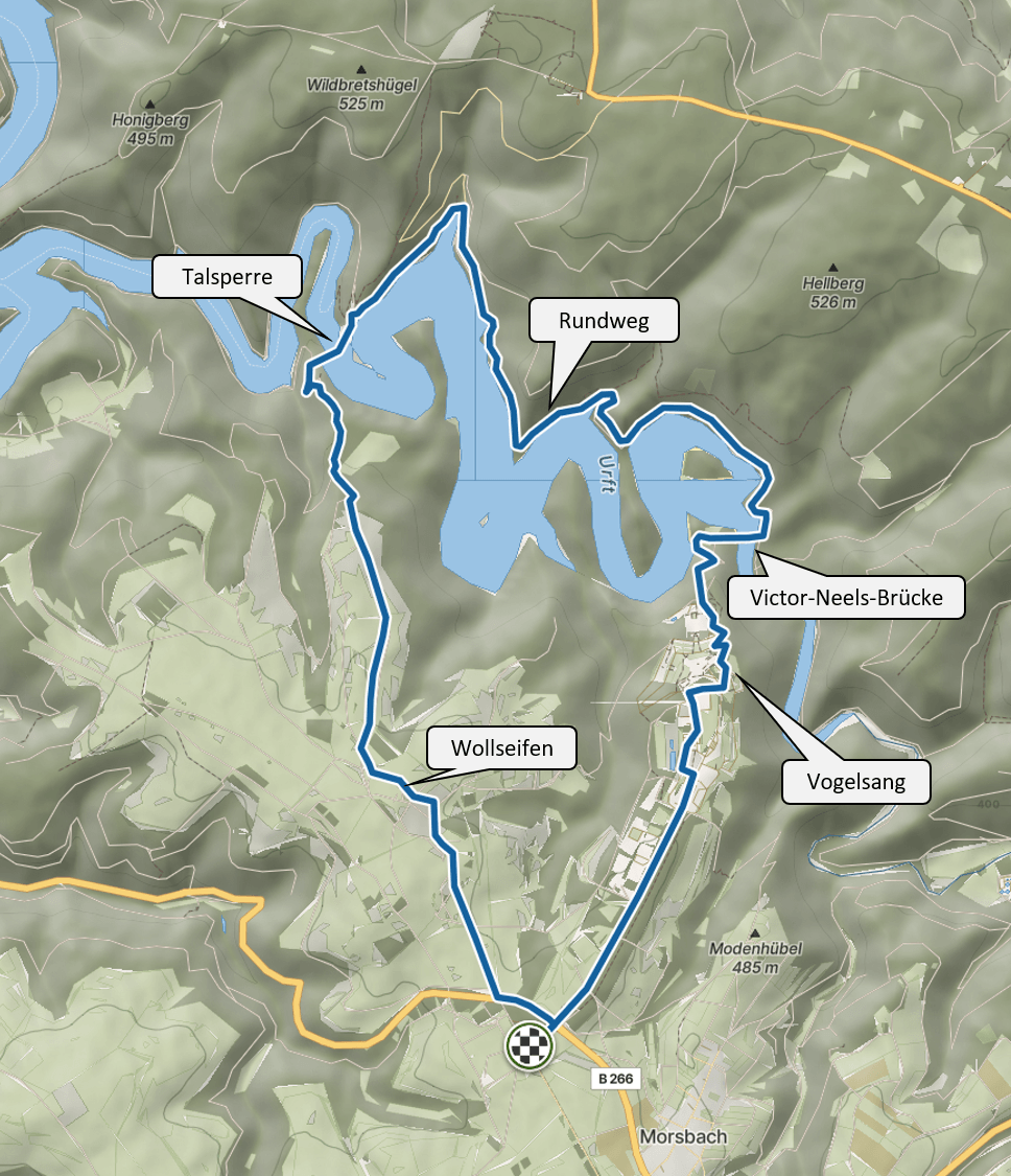 A popular hiking route is the circular route from Vogelsang, via the abandoned village of Wollseifen down to the dam.
